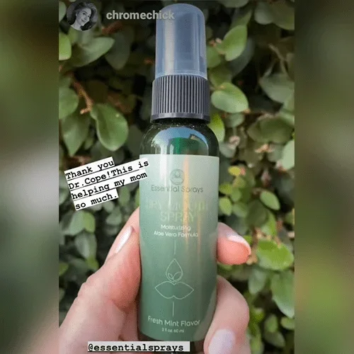 We know it's tough, and dry mouth doesn't help. Essential’s Dry Mouth Spray is here to gently soothe your mouth with its all-natural, gentle formula. It's like a comforting hug for your mouth, helping you find some comfort during this challenging journey.